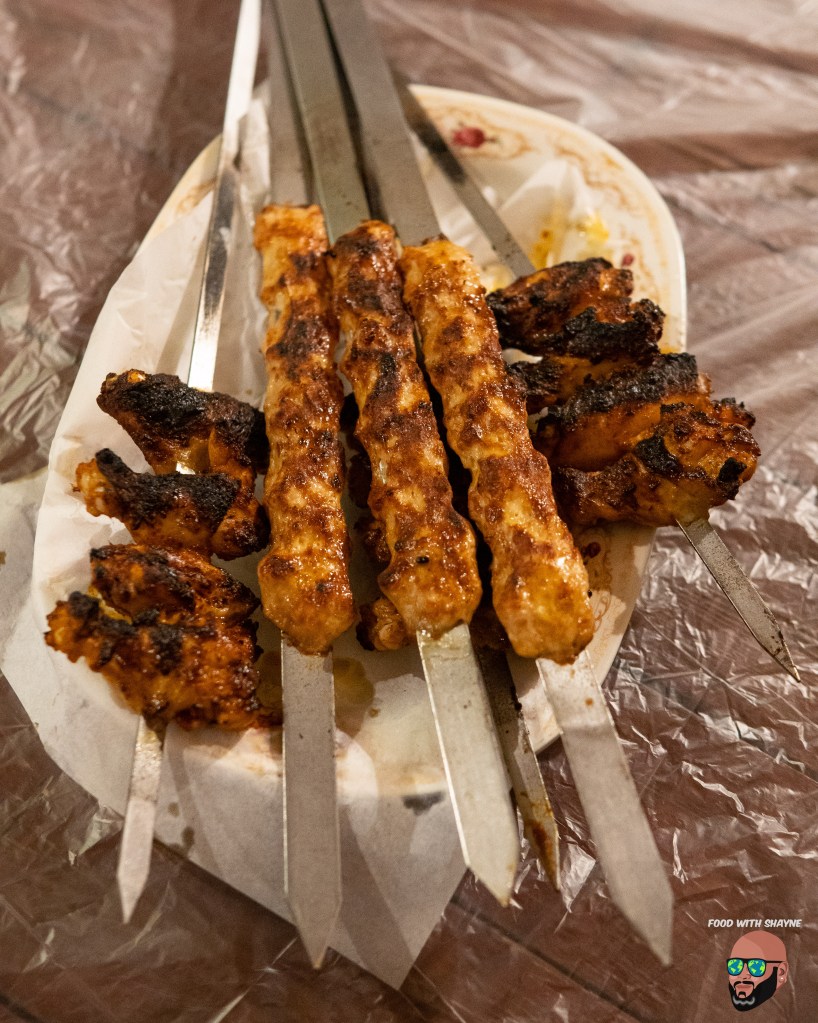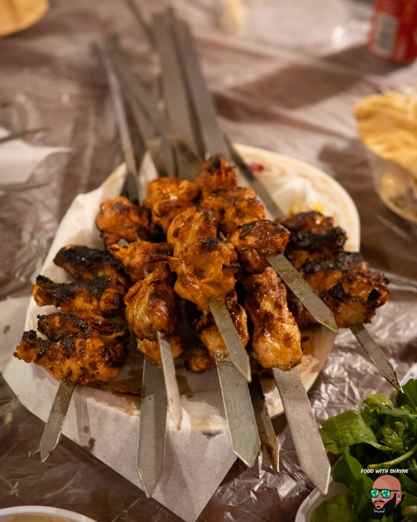 A skewer costs between SR.4 & SR.7 and you can choose between chicken, lamb or camel with the chicken being the cheapest at SR. 4 per skewer.
